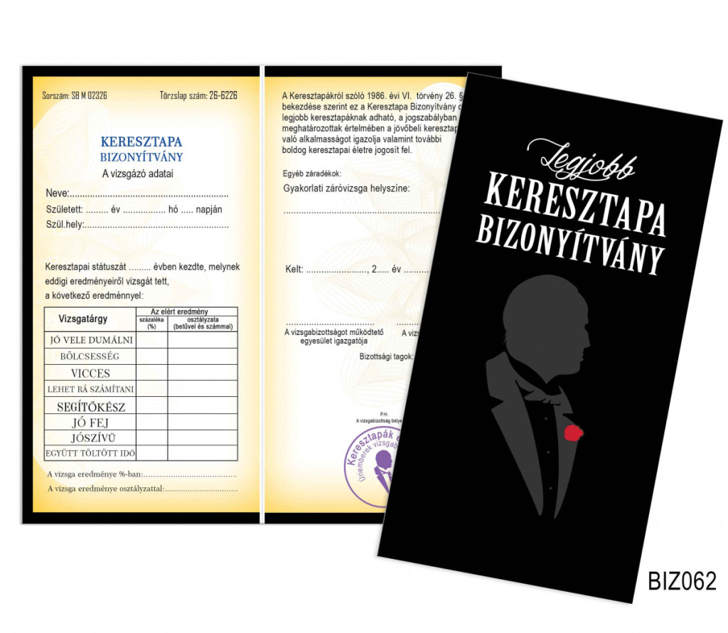 Legjobb Keresztapa Bizonyítvány