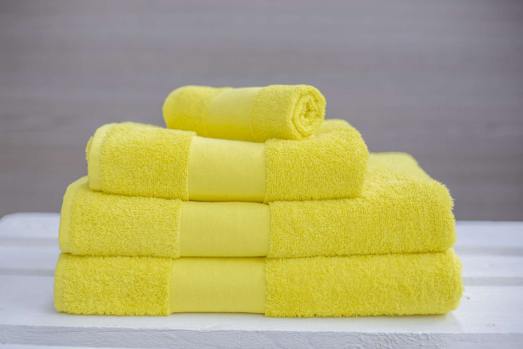 Színazonos pamut akasztóval, két hangsúlyos bordűrrel a törölköző mindkét végén.
