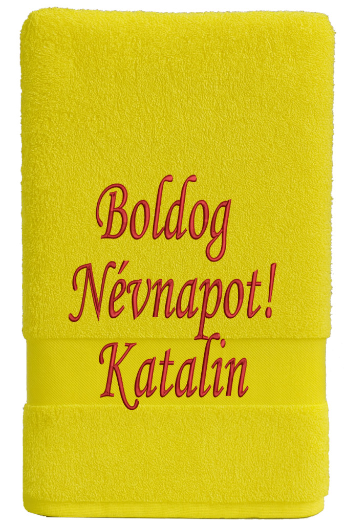 Egyedi hímzett törölköző – Boldog Névnapot!/Sárga