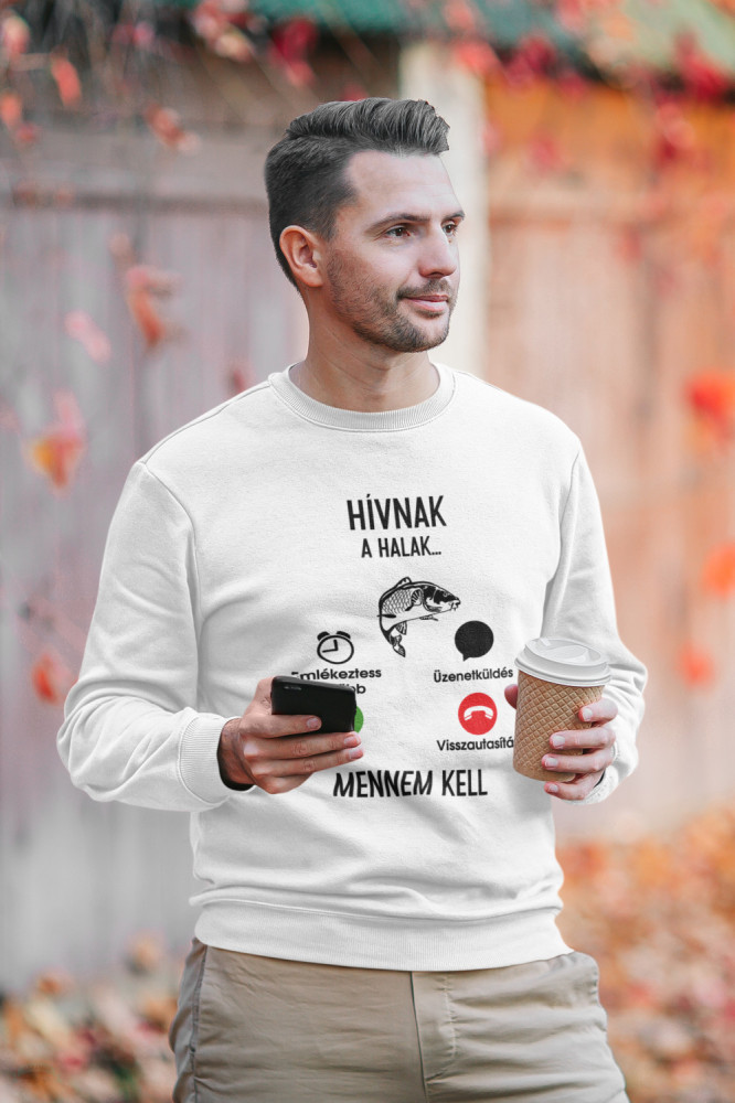 Hívnak a halak unisex pulóver fehér