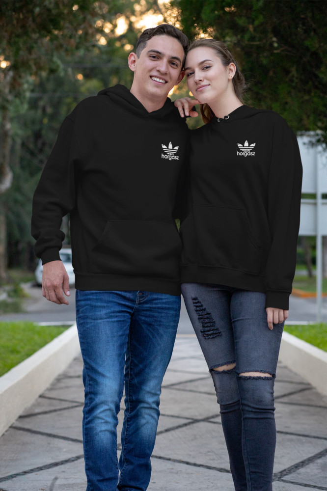 Horgász  unisex kapucnis fekete pulóver