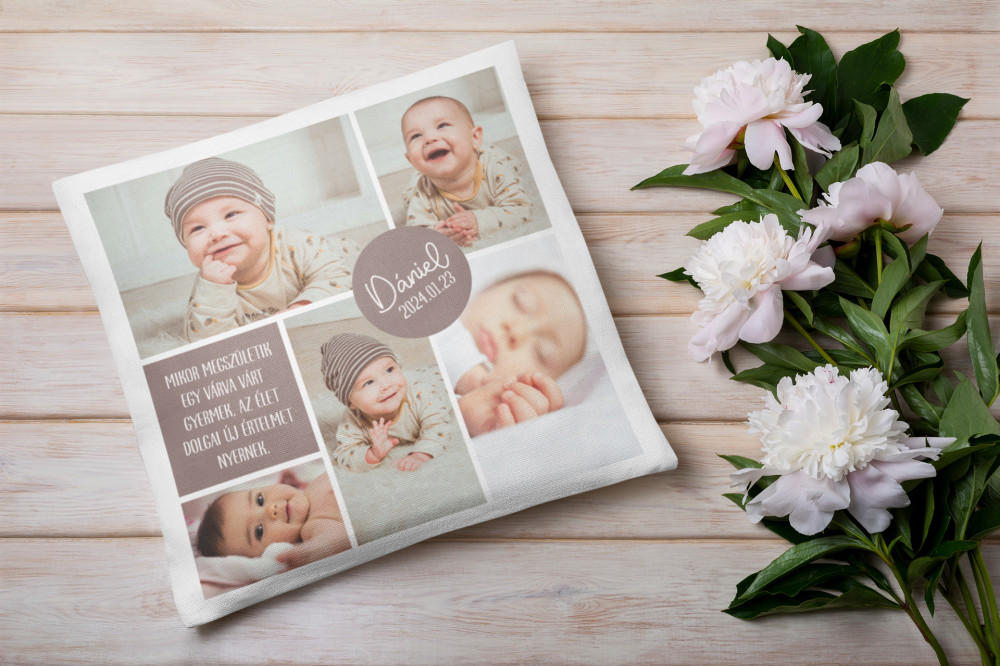 Montázs 5 képből fehér párna