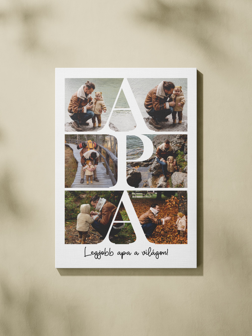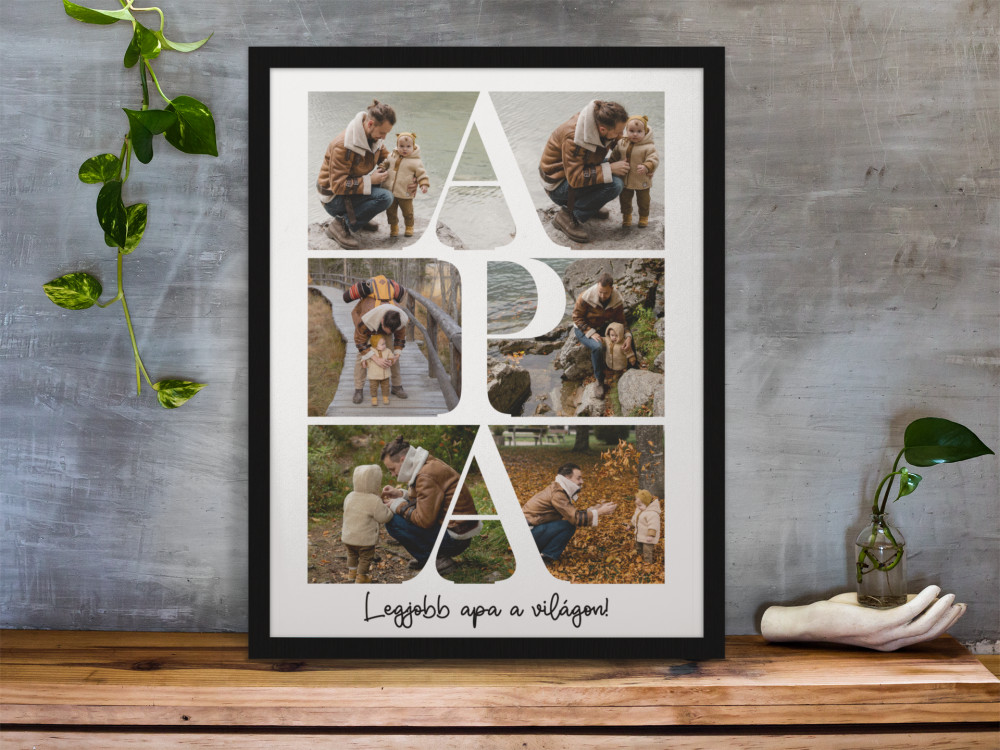 Apa napjára, születésnapra vagy évfordulóra készített kollázs garantáltan felejthetetlen élményt nyújt. Válaszd ki a weboldalunkon található kollázsok egyikét, majd töltsd fel saját fényképeidet. Kiválasztott kép segítségével személyes történetet mesélhetsz el, amely közel áll a megajándékozott szívhez.