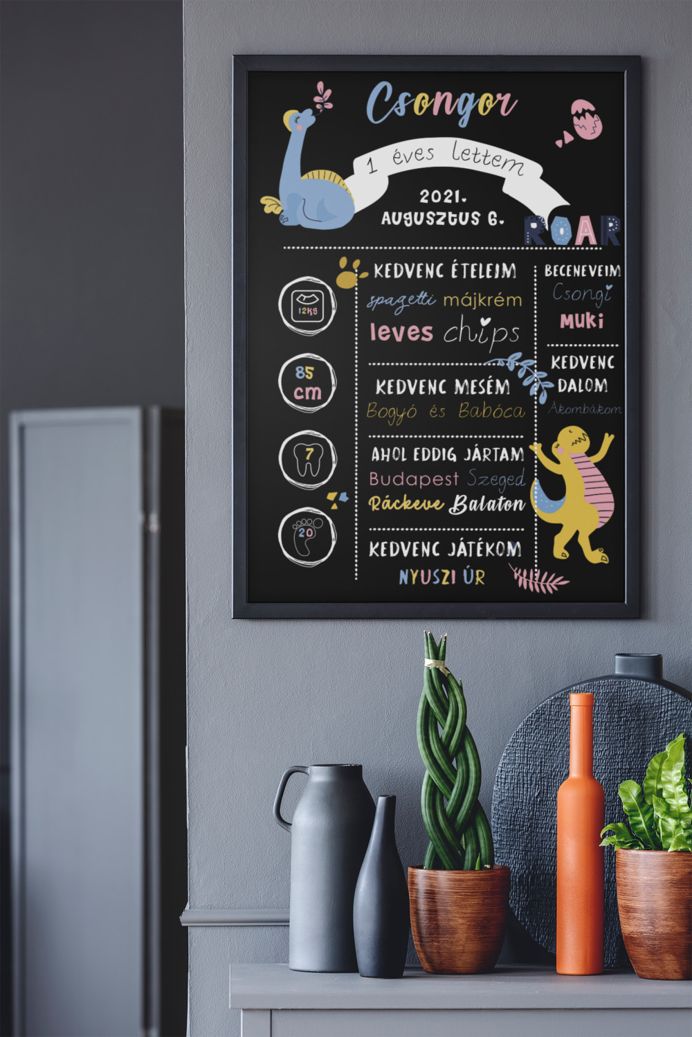 Születésnapi dinoszauruszos egyedi emlékőrző