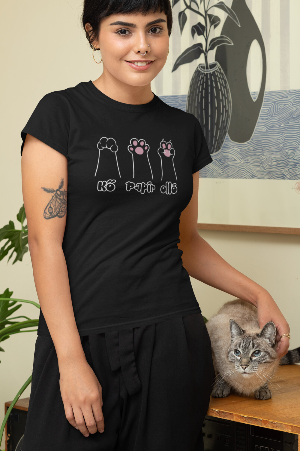 Kő papír olló fekete póló