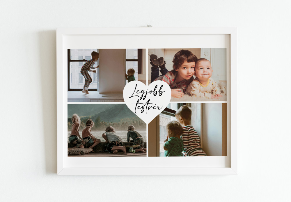 A személyre szabott kollázs nem csupán egy dekoratív tárgy lesz otthonukban, hanem egy olyan emlék is, amely mindig eszükbe juttatja, mennyire fontosak vagyunk egymás számára. Ne hagyja ki a lehetőséget, hogy egy különleges és személyes ajándékkal örömet szerezz szeretett személyednek! Válassz minket, és mi gondoskodunk arról, hogy az ajándékod valóban emlékezetes legyen.
