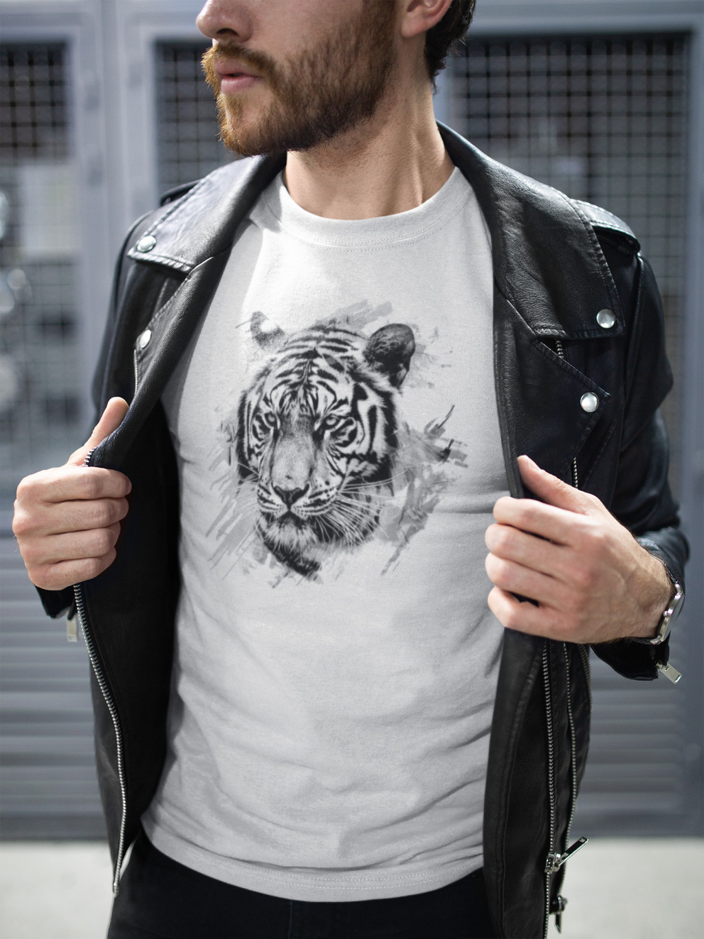 Fekete-fehér tigris mintás fehér póló