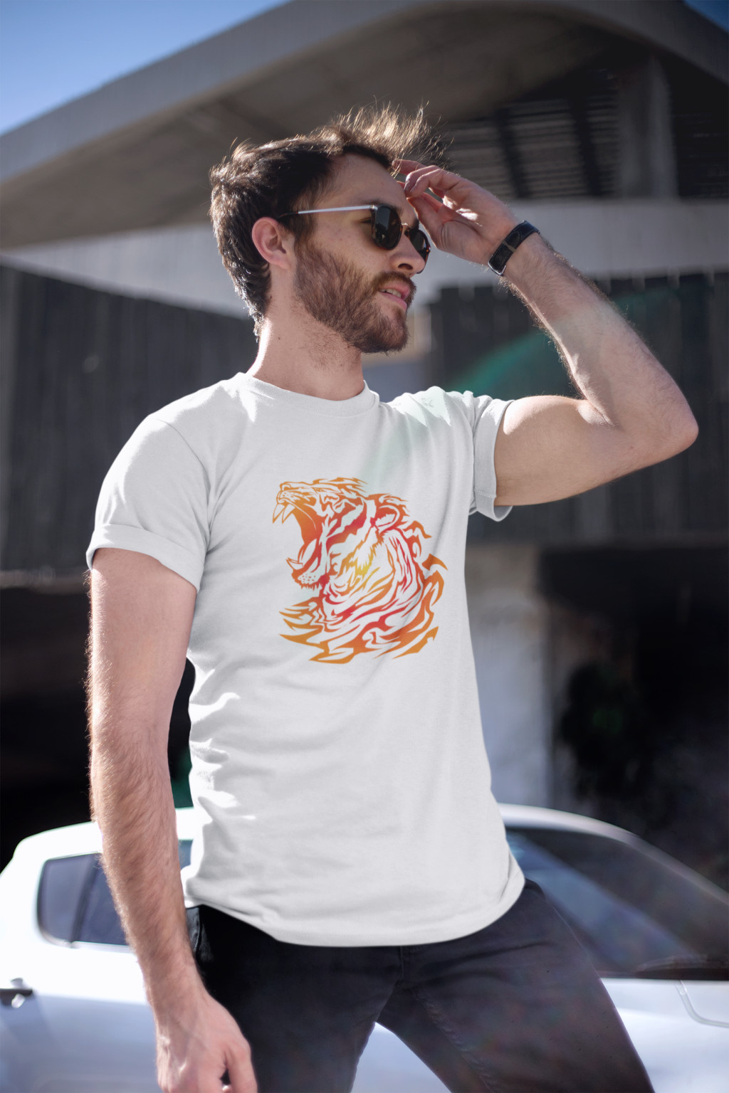 Tigris mintás fehér póló