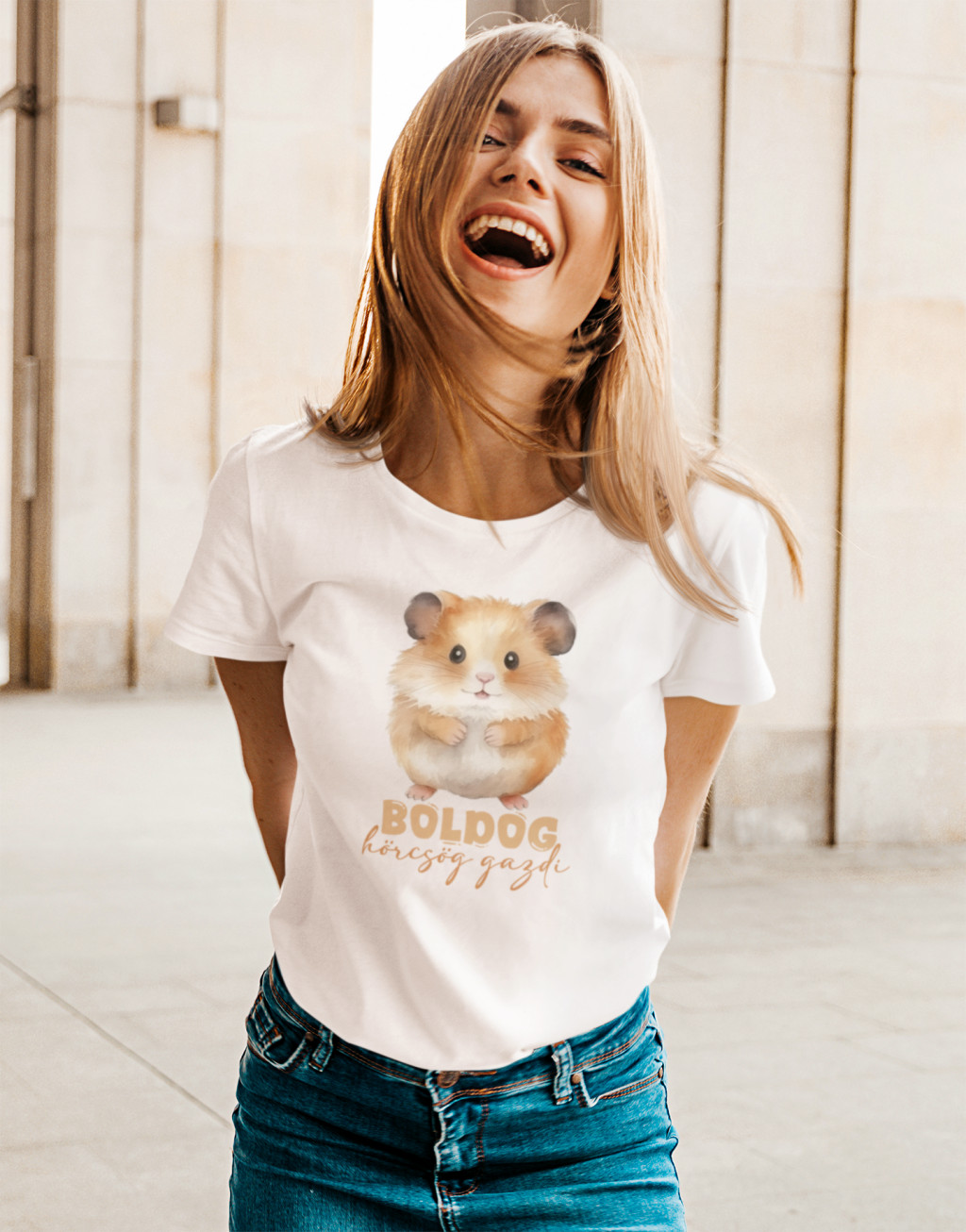 Boldog hörcsög gazdi fehér póló