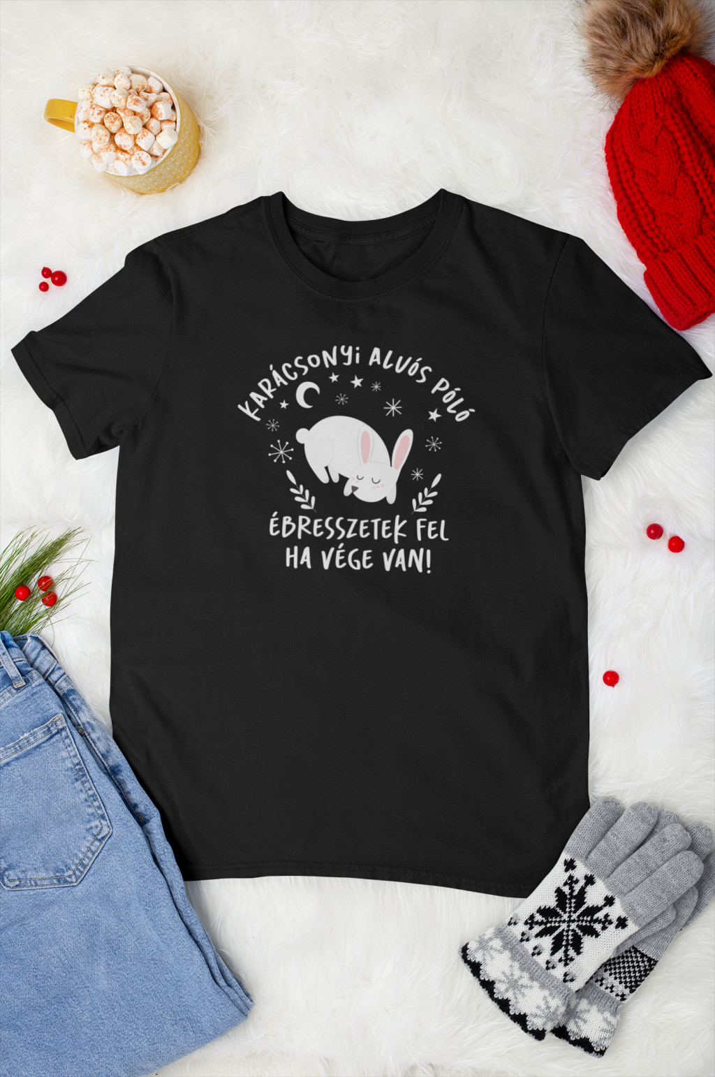 Karácsonyi alvós fekete póló